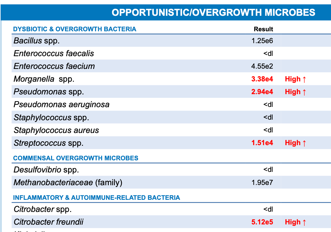 But when Daniyal ran a GI-MAP stool test, the picture became much clearer — and more complex. Her gut showed signs of low stomach acid, H. pylori, and overgrowths of several opportunistic bacteria. Her estrogen detox pathways were sluggish, which can worsen histamine-related symptoms like rashes and food reactions. The test also revealed markers of inflammation and immune activation.